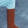 Leggings are 14″ high with an 8.5″ two-ply flare (one layer of legging fabric over split leather). Come standard with full vertical velcro closure and metal instep bars.