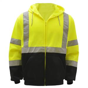 GSS Safety 7003 Class 3 Zipper Front Hooded Sweatshirt with Black Bottom-Lime