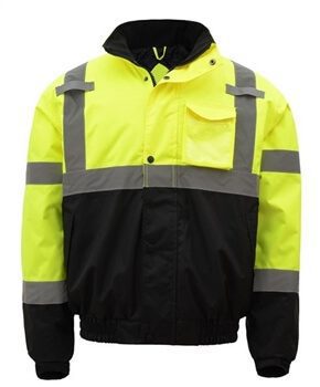 GSS Safety 8001 Class 3 Quilt-Lined Bomber Jacket – Lime with Black Bottom