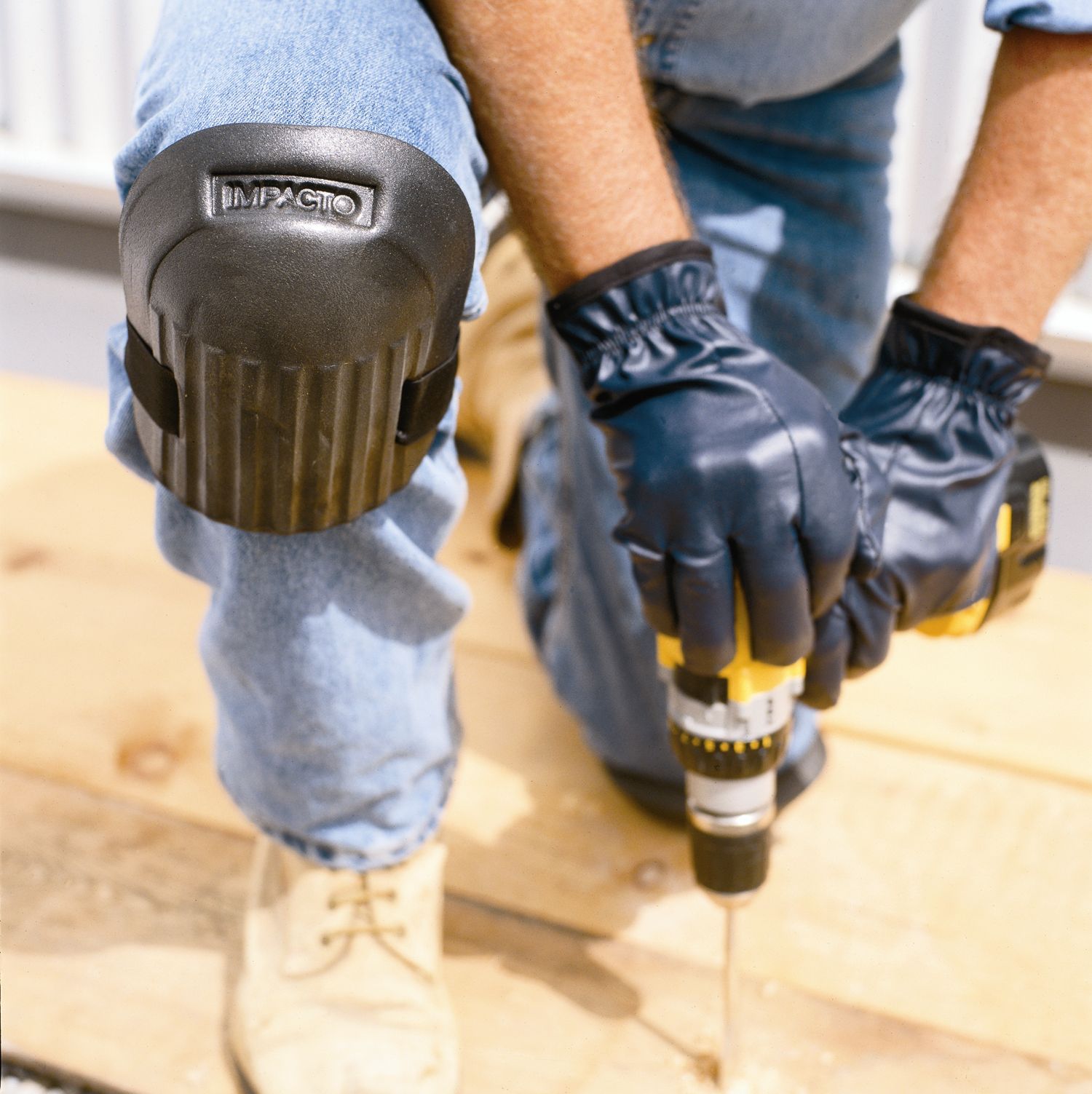 Continuous pressure on the knee due to working in a kneeling position may lead to chronic conditions, such as bursitis over the knee cap or injury to the cartilage. Excessive pressure can cause problems such as knee burn pain, fluid build up, tissue swelling, loose joints and associated arthritic conditions. Major knee damage will occur when combining existing trauma with prolonged pressure and irritation along with turning and twisting motions. The use of knee pads is an effective way to reduce the occurrence of knee injuries. Knee pads protect against injuries and inflammation caused by hard surfaces, pieces of gravel and similar objects on ground. The wide range of IMPACTO® Knee Pads provide a viable solution to workers to help prevent knee injuries and the onset of cumulative trauma to the knee.