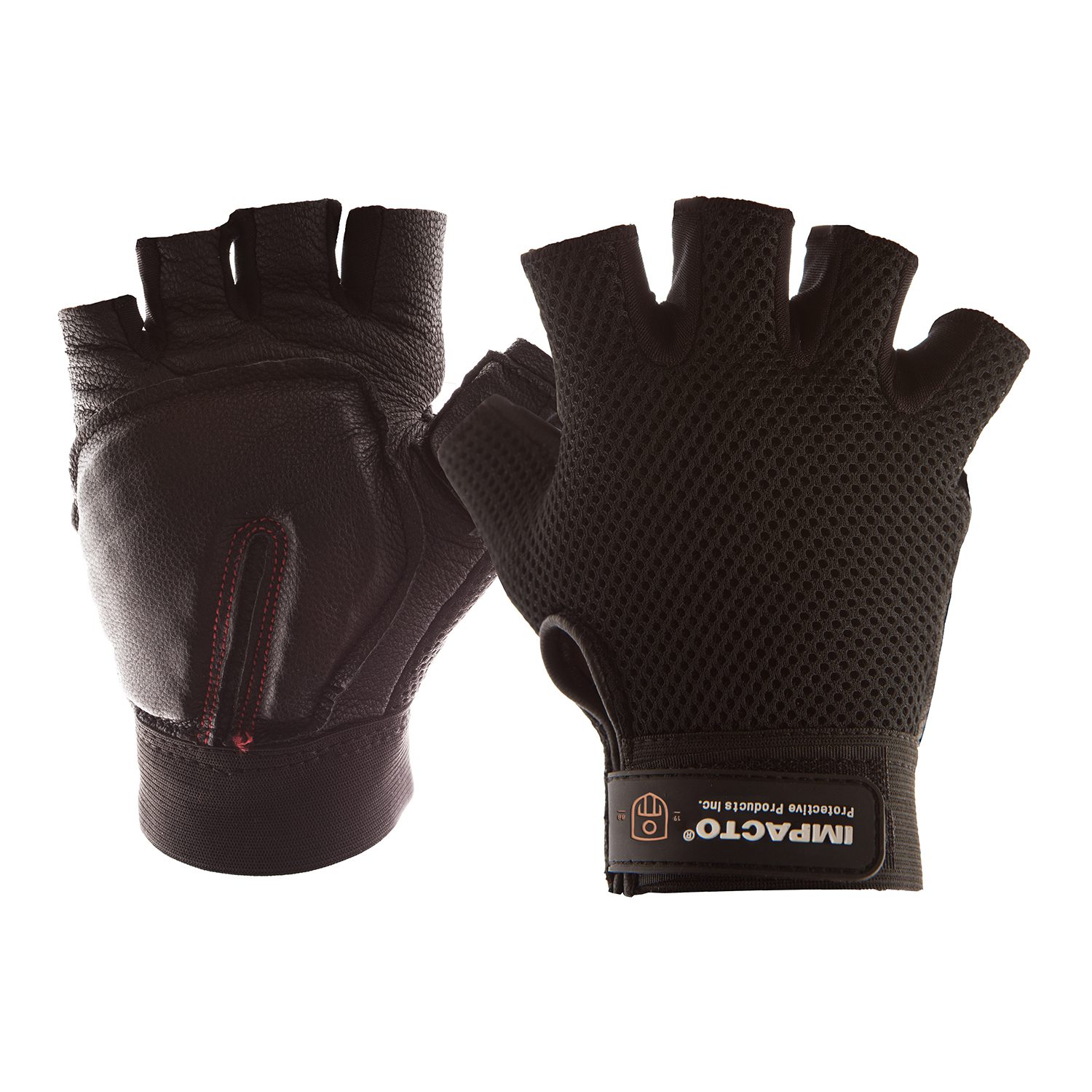 IMPACTO ST8610 Half Finger Carpal Tunnel Glove, Nylon Mesh, Saddle Leather Palm with Patented Shock-Tek Technology & Viscolas VEP Padding