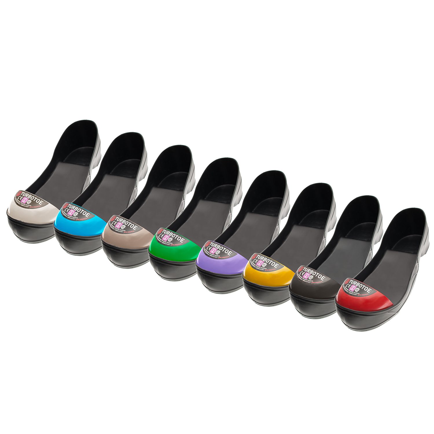 IMPACTO TURBOTOE Safety Steel Toe Cap protects the toe area from accidental impact, crushing or stubbing. Flexible and stretchy made of pliable PVC. Treads under sole to prevent slipping and help liquid flow away from the foot.