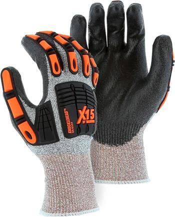 Majestic 34-5337 Knucklehead X-15 Cut Resistant Dyneema Gloves, Polyurethane Palm Dipped, Impact Resistant, ANSI Cut Level A2, Box/12 Pairs
