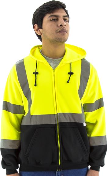 Majestic 75-5325 ANSI Class 3 Hooded Full Zip Sweatshirt, Hi Vis Yellow & Black