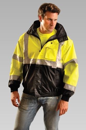 OccuNomix LUX-TJBJ-B Premium Four-Way Hi Vis Black Bottom Bomber Jacket, ANSI Class 3, Waterproof, Black Fleece Liner, 4-in-1, ASTM F 2732 Temperature Range 21 degrees