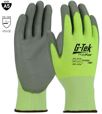 PIP 16-645LG G-Tek PolyKor Cut Resistant Glove, Polyurethane Coated Smooth Grip Palm & Fingers, ANSI Cut Level A5 , Box/ 12 Pairs
