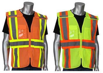 PIP 302-0590 ANSI Type R Class 2 Expandable Two-Tone Mesh Breakaway Vest, Hi Vis Yellow or Orange