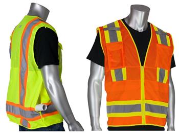 PIP 302-0700 Surveyors Safety Vest Class 2 Type R Two Tone 10 Pocket Mesh Top Solid Bottom Hi Vis Lime or Orange
