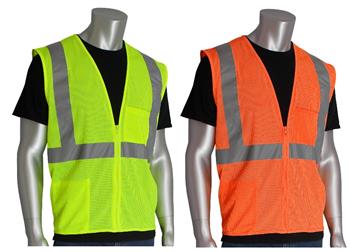 PIP 302-0702Z ANSI Type R Class 2 Hi Vis Green or Orange Two Pocket Value Mesh Safety Vest with Zipper
