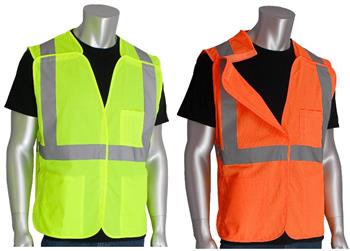 The PIP 302-5PV Breakaway Safety Vest has 3 pockets and available in Hi Vis Lime or Orange in a Mesh or Solid