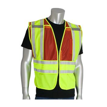 PIP 302-PSV-Red-NL ANSI Type P Class 2 Public Safety Vest, 5 Point Breakaway, Hi Vis Yellow & Red