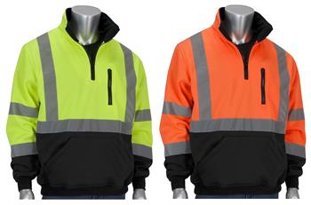 PIP 323-1330B ANSI Type R Class 3 Hi Vis 1/4 Zip Pullover Sweatshirt Black Bottom Water Resistant Hi Vis Lime Yellow or Hi Vis Orange