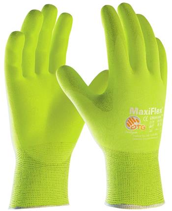 PIP 34-874FY MaxiFlex Ultimate Seamless Knit Nylon / Lycra Glove, Nitrile Coated MicroFoam Grip on Palm & Fingers, Hi Vis Yellow – Box/12 Pairs