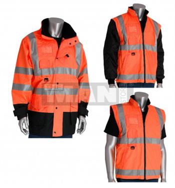 PIP 343-1756-OR ANSI Class 3 7-in-1 All Conditions Coat with Inner Jacket and Vest Combination – Hi Vis Orange