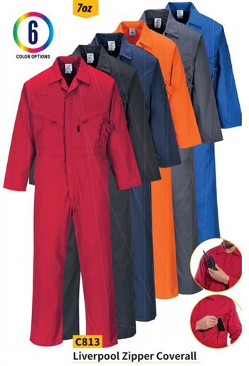 Portwest C813 Liverpool Zipper Coverall, 7 oz. Kingsmill, 4 Color Options