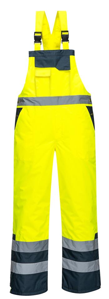 Portwest S489 Hi Vis Contrast Bib, Quilt Lined, Waterproof Durable Denier Shell, Class E Hi Vis Yellow/Navy
