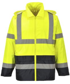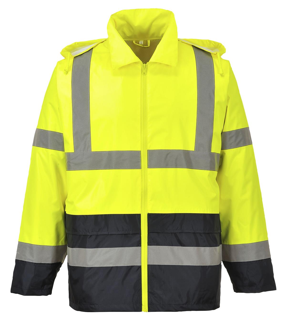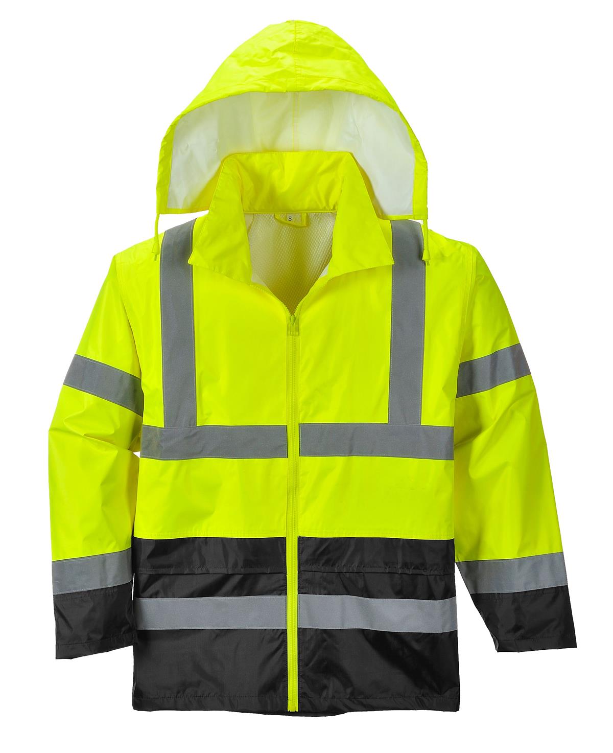 PortWest UH443 Hi Vis Class 3 Classic Contrast Rain Jacket, Waterproof, Pack Away Adjustable Hood, UPF 50, Hi Vis Yellow/Black