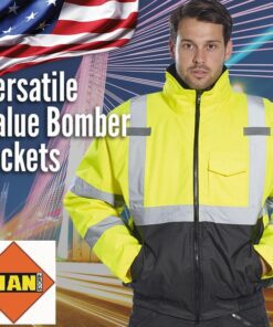 PortWest US363 Hi Vis Class 3 Type R Value Bomber Jacket, Waterproof, Hi Vis Yellow/ Black Bottom