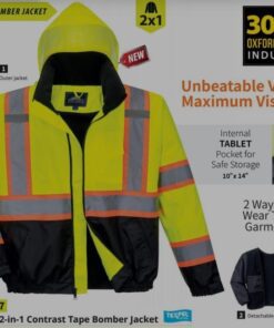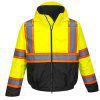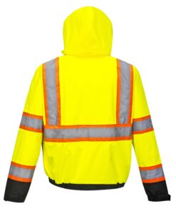 PortWest US367 Hi Vis 2-in-1 Contrast Tape Bomber Jacket, Class 3 Type R, Stain Resistant, Hi Vis Yellow with Hi Vis Orange Trim