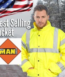 Our stain resistant, waterproof and breathable jacket meets the highest American Standards. 300 denier is a 100% polyester yarn. It’s a tough fabric made for tough working conditions and much more durable than traditional hi vis jacket fabrics. This jacket has superb abrasion and tear resistance. THe Polyurathane (PU) coating on the inside makes the fabric durable, breathable and waterproof. The outer has a water and stain repellent coating that helps keep the garment clean.Â