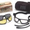 Flame resistant foam padding forms a seal to keep out dust and airborne particles. Strap has Quick Fit retainer for easy on/off. Lenses are treated to prevent fogging. Design allows air to flow freely reducing heat. XS EASE Replacement lens system. Interchangeable temples/strap included with each pair. Lenses provide 99% protection against harmful UV rays.