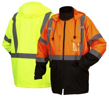 Pyramex RP31 Series Hi Vis Class 3 Type R Weatherproof Parka, Zip Out Liner, Concealed Hood, Hi Vis Orange & Black or Hi Vis Lime & Black