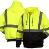 Pyramex RSZH33 Hi Vis Type R Class 3 Full Zip Hooded Sweatshirt, Weatherproof, Hi Vis Lime Green or Hi Vis Orange, Black Bottom Front