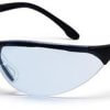 Crafted from high grade polycarbonate, machined from virgin materials and formed to shape. Align the angle of the lens to the proper position for your work application with ratcheting lens pitch adjustment. Lens/frame design allows air to flow freely up and away from lens to prevent fogging. Temples adjust to four different lengths. Adjustable nose pad conforms to a broad range of bridge sizes. Clip and tension mounted 9.5 base curved lens eliminates screws or rivets for quick and easy lens replacement. Provides 99% UV protection.