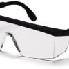 Ribbed, cushioned nosepiece fits a wide range of bridge sizes and protects against slippage. Durable dual injected polycarbonate and rubber temples. Single lens design provides maximum protection. Lenses are coated for superior scratch resistance. Lenses provide 99% protection against harmful UV rays.