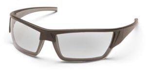 Stylish ergonomical frame combines with sleek polycarbonate lens for precision fit and wrap around protection. Soft rubber temple inserts provide secure, non slip fit