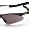 Optimal style in safety eyewear, with clean lines and sports appeal. Includes black lanyard cord with rubber tips for extra security while wearing. Ventilated, straight-back flexible temples provide cool, pressure free fit. Rubber temple tips keep eyewear secure for the active worker. Polycarbonate lenses provide maximum vision protection. Built in rubber nose piece provides all day comfort. Scratch resistant lenses filter out 99% of harmful UV rays.