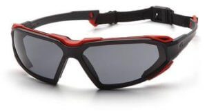 Pyramex SBR5020DT Safety Glasses, Highlander Eyewear Gray Anti-Fog Lens with Black/Red Frame