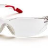 Innovative and sporty safety spectacle. Unique rubber temple tips twist around the temples for a stylish and secure fit. 9.75 base curve lens provides excellent side protection against airborne particles. Lightweight, frameless protection is ideal for all-day wear. Lenses provide 99% protection against harmful UV rays.