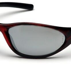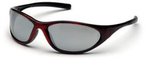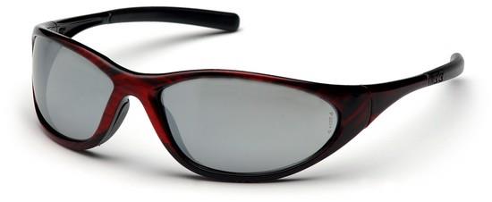 Pyramex SRW3370E Safety Glasses, Zone II Eyewear Silver Mirror Lens with Red Wood Frame