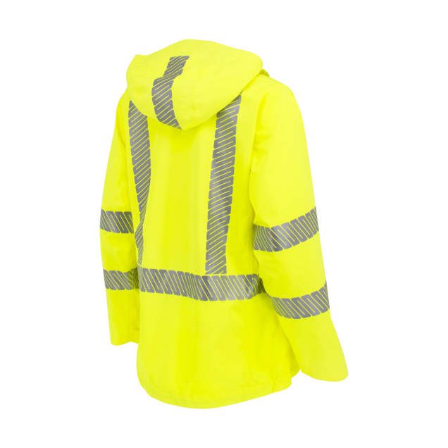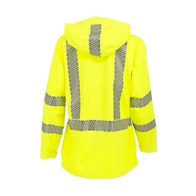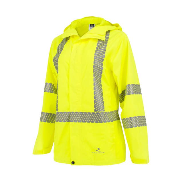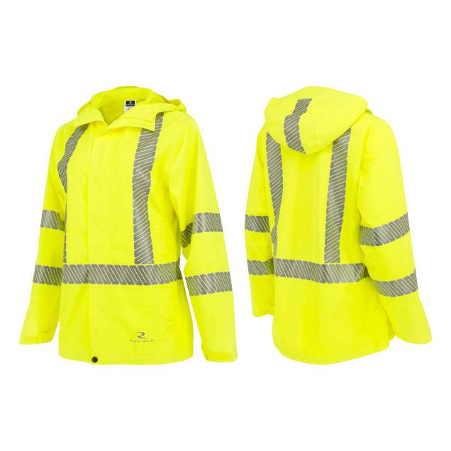 Constructed from lightweight Ripstop waterproof polyester, the Radians RW12L is a ladies Type R, Class 3 general-purpose rain jacket. It features an adjustable hem with toggle, underarm venting with zipper, and conveniently folds into its hood or lower front pocket for packable portability. Great for wet and windy conditions, this lightweight jacket designed for women by women will help meet the increasing demand for PPE that fits women appropriately.