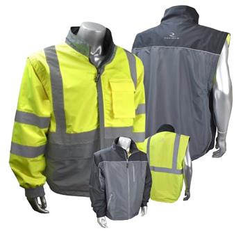 The Radians SJ07-3ZDS Reversible Windbreaker with Zip-Off Sleeves is an all-purpose, 4-in-1, windbreaker provides superior, cross-seasonal comfort and weather protection. Reverses from dark, low-profile grey to bright, Hi-Viz yellow. The zippered sleeves allow the Class 3 Hi-Viz jacket with sleeves to easily convert to a Class 2 Hi-Viz vest without sleeves.