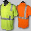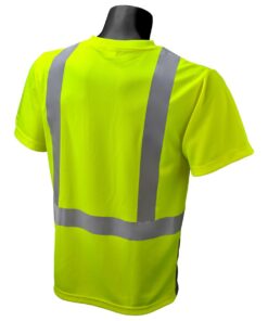 The stripes are adhered by heat transfer rather than sewn on, making the safety T-shirt wear much more like a regular T-shirt. The wicking properties improve hot weather comfort making it feel much cooler. The front pocket does not include reflective material to allow for corporate imprints.
