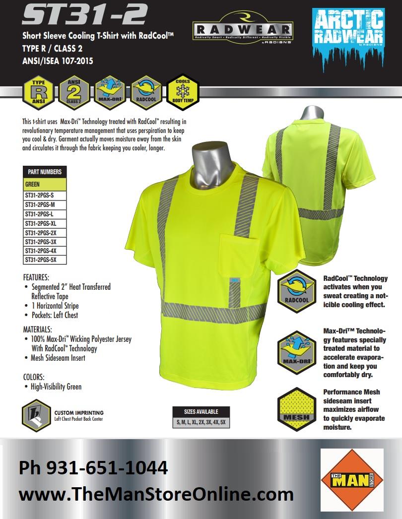 Radians ST31-2 Hi Vis Class 2 Short Sleeve Cooling T-Shirt with RadCool & Max-Dri Moisture Wicking Technology