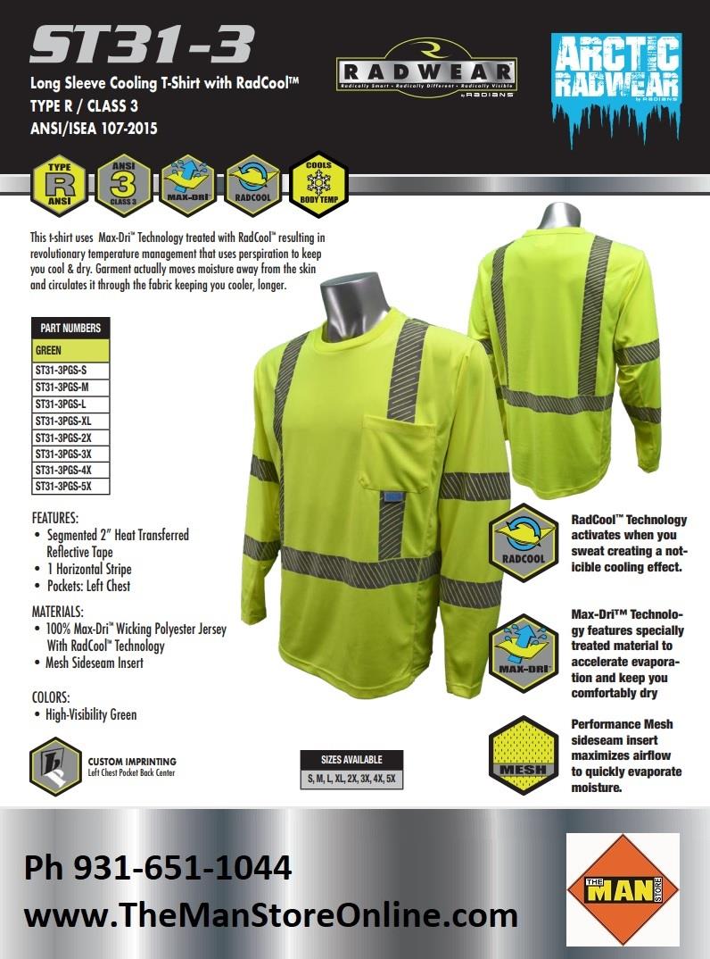 Radians ST31-3 Hi Vis Class 3 Long Sleeve Cooling T-Shirt with RadCool & Max-Dri Moisture Wicking Technology