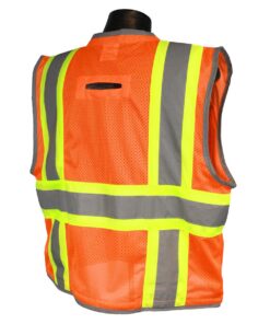 Materials: ANSI rated mesh front and back with solid material pockets.