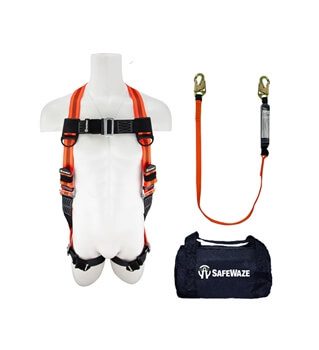 SafeWaze FS126-E Fall Protection Kit with Pass Thru Buckles on Legs, 6′ Shock Lanyard in a Bag