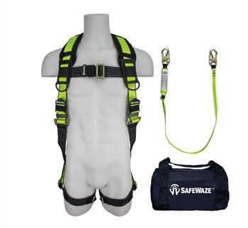 SafeWaze FS126 Fall Protection Kit with Pass Thru Buckles on Legs, 6′ Shock Lanyard in a Bag