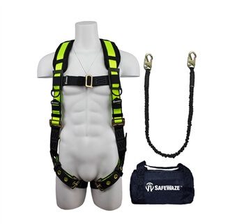 SafeWaze FS133 Fall Protection Kit with Tangle Free Grommet Leg Harness, 6′ Tubular Lanyard in a Bag