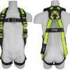 | Materials | 1.75 in (44.45 mm) High-visibility polyester webbing with black edges, rated at 5,000 lbs, 1.75 in (44.45 mm) Black polyester, rated at 5,000 lbs, High-strength polyester stitching, Plastic lanyard keepers, Plastic no-tangle back D-ring pad, Forged steel D-rings, Stamped steel pass-through chest buckles |