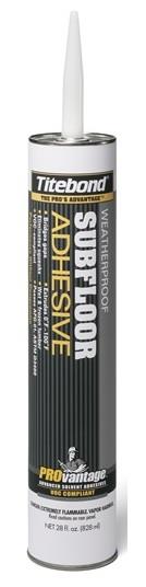 PROvantage™ Weatherproof Subfloor Adhesive is a high-performance, VOC-compliant formula ideal for subfloor installations and general plywood use. It offers a strong initial tack and excellent bond strength for particleboard,