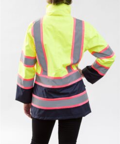 Utility Pro UHV825 Women’s Class 2 Rain Jacket, Lime & Navy with Pink Trimmed Reflective Striping