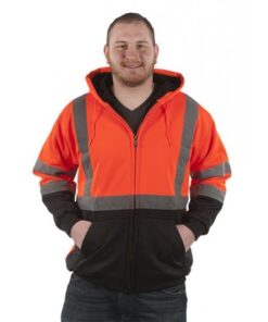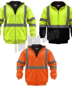 This HI Vis Soft Shell Sweatshirt is Heavier than most, oversized so you can layer this over another sweatshirt and has an extended torso covering a good portion of your Butt. It sheds rain, sleet and snow very well and is much more stain resistant than Hi Vis Fleece